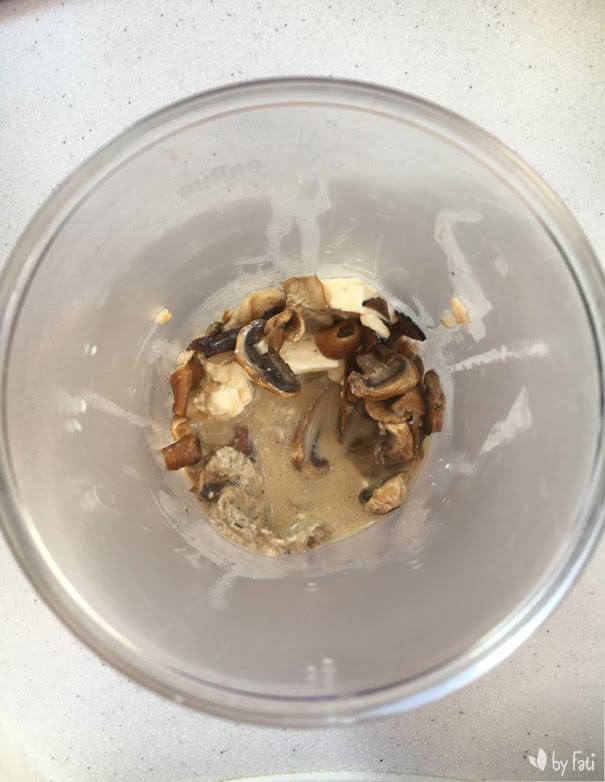 - Con una batidora de mano trituramos el contenido de la sartén. Ya sabes a gustos, más o menos triturado o más o menos espeso. Si quieres que esté más liquida pues simplemente ir añadiendo más leche.